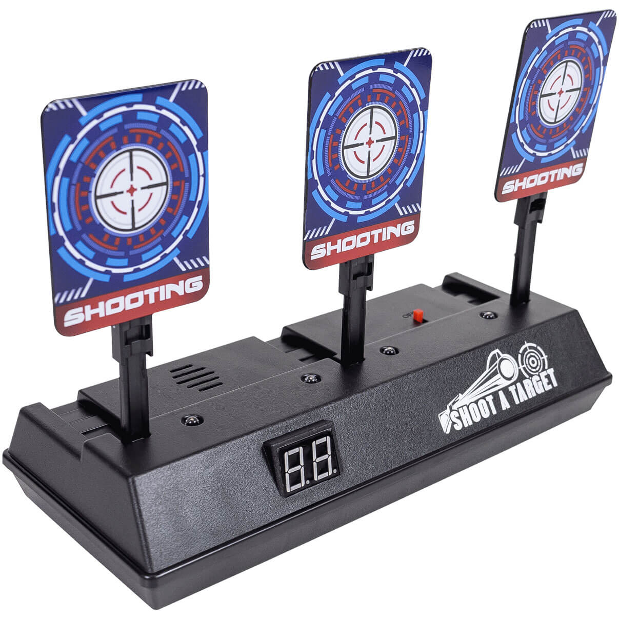 Mas a magia não para por aí! Este alvo eletrônico inteligente também possui um sistema de pontuação automática, proporcionando uma experiência sem esforço e sem confusão. Acerte três alvos de uma vez para conseguir marcar um ponto. A cada rodada, os pontos são contabilizados instantaneamente e exibidos em um display digital nítido, mantendo você atualizado com sua pontuação em tempo real.